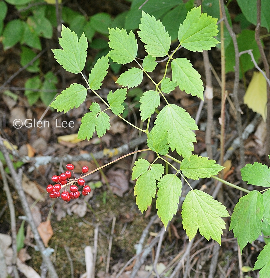 General: Bushy woodland plant with showy clusters of berries in mid-summer. Stems glabrous.