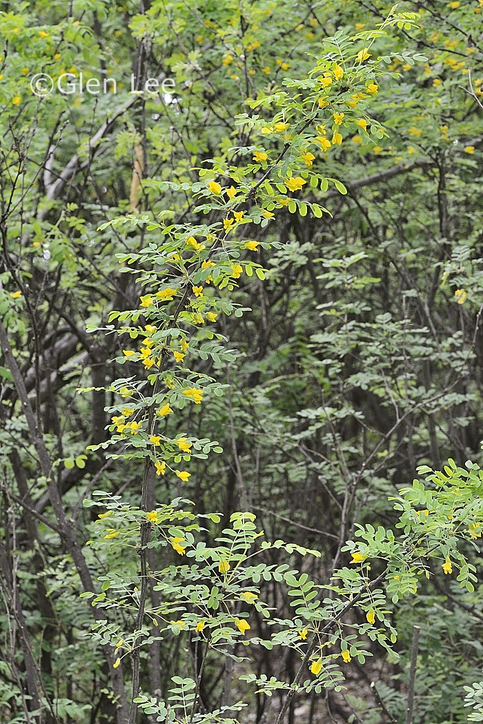Leaves: Leaves alternate and in tight clusters along the stem, are pinnate, usually with 12 leaflets. Leaflets oblong to obovate and have a small, acute tip. We measured a leaf at 7 cm long, and a leaflet at 25 mm long by 10 mm wide. Leaflets and petioles have soft white hairs.