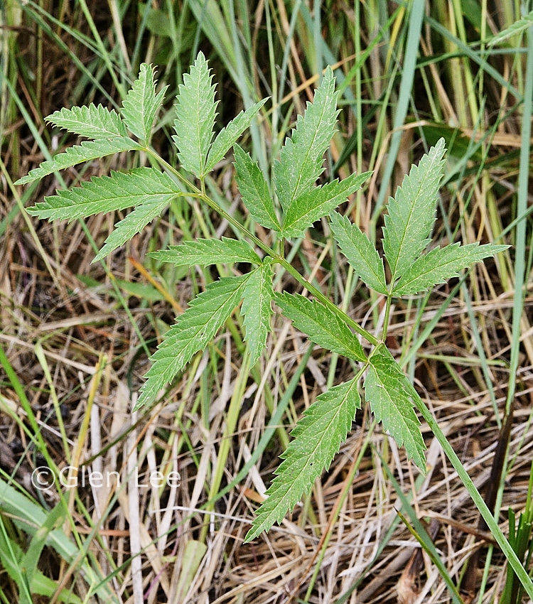 Leaves: Leaves 2 or 3 times pinnate with lanceolate leaflets, leaflets saw-toothed. Leaflet measured at 7 cm long and 18 mm wide. Basal leaves long-stalked, stem leaves alternate.