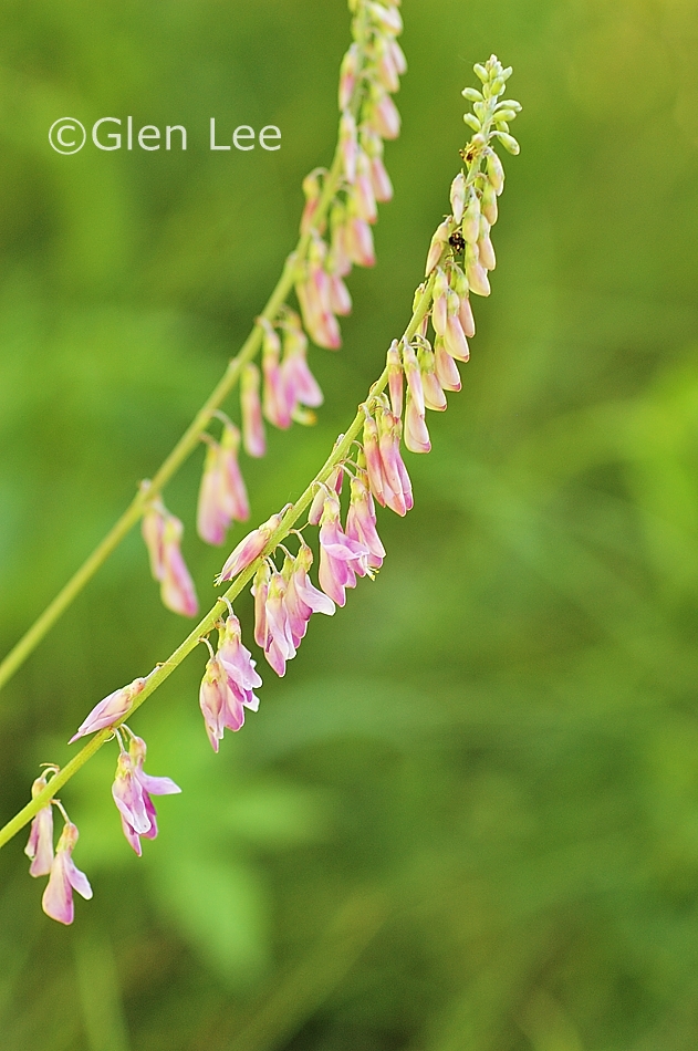 Flowers: Flowers are pink to purple, grow in long racemes, and droop down. Calyx tubes triangular (not linear) and much shorter than the calyx tube. Racemes measured to 13 cm, flowers measured to 15 mm.