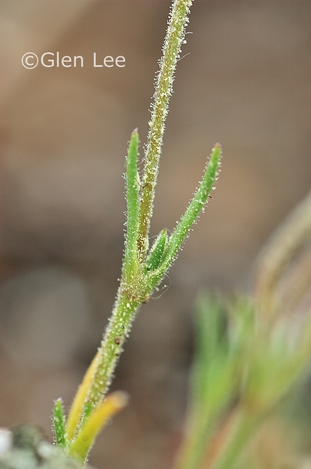 General: Delicate plants with a tufted growth habit, stems numerous, and grass-like / filiform leaves. Plants are glandular puberulent.