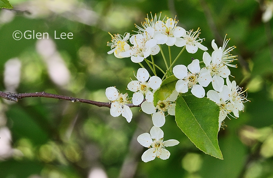 Similar species: Might be mistaken for Prunus virginiana (Choke Cherry), however that shrub's flowers grow in long racemes, not in small umbels.