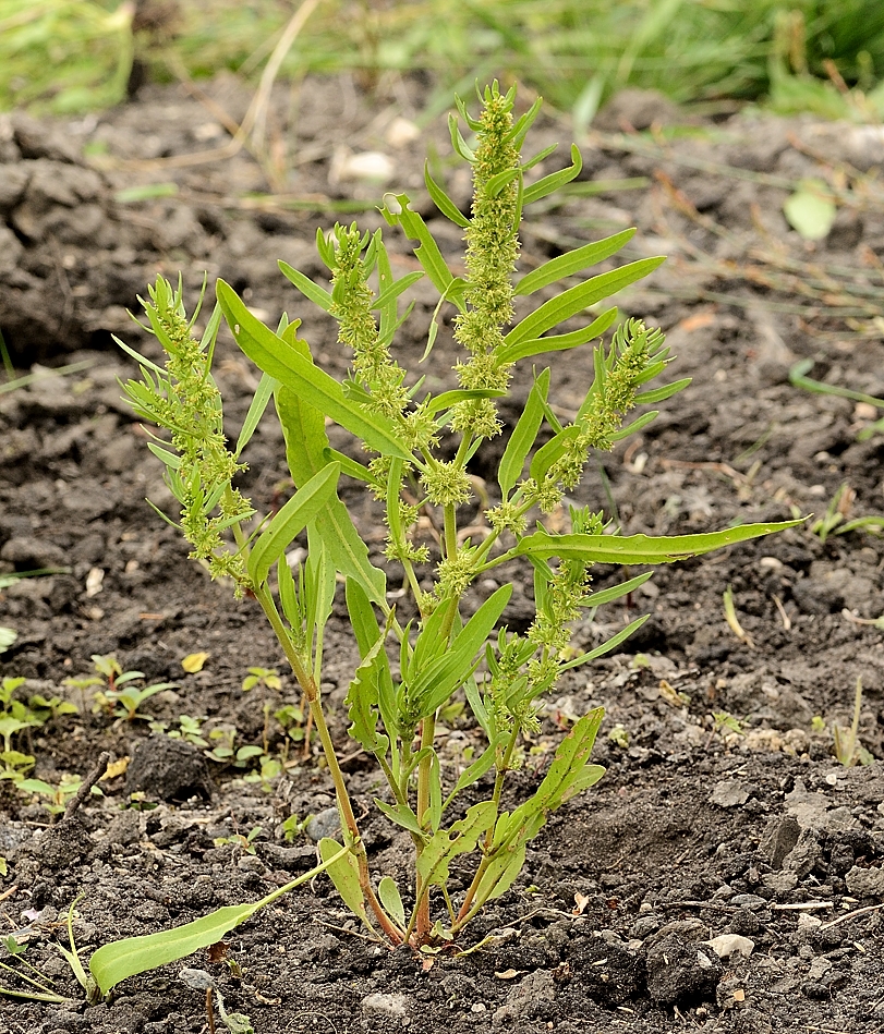 Flowers: Inflorescence in dense spikes with leafy bracts for entire length of stem, flowers small, greenish.