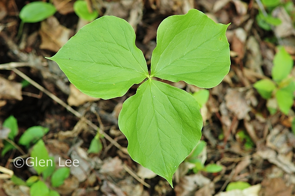 Leaves: Three ovate leaves in a whorl at top of the stem, we measured a leaf at 11 cm wide and 11.5 cm long.